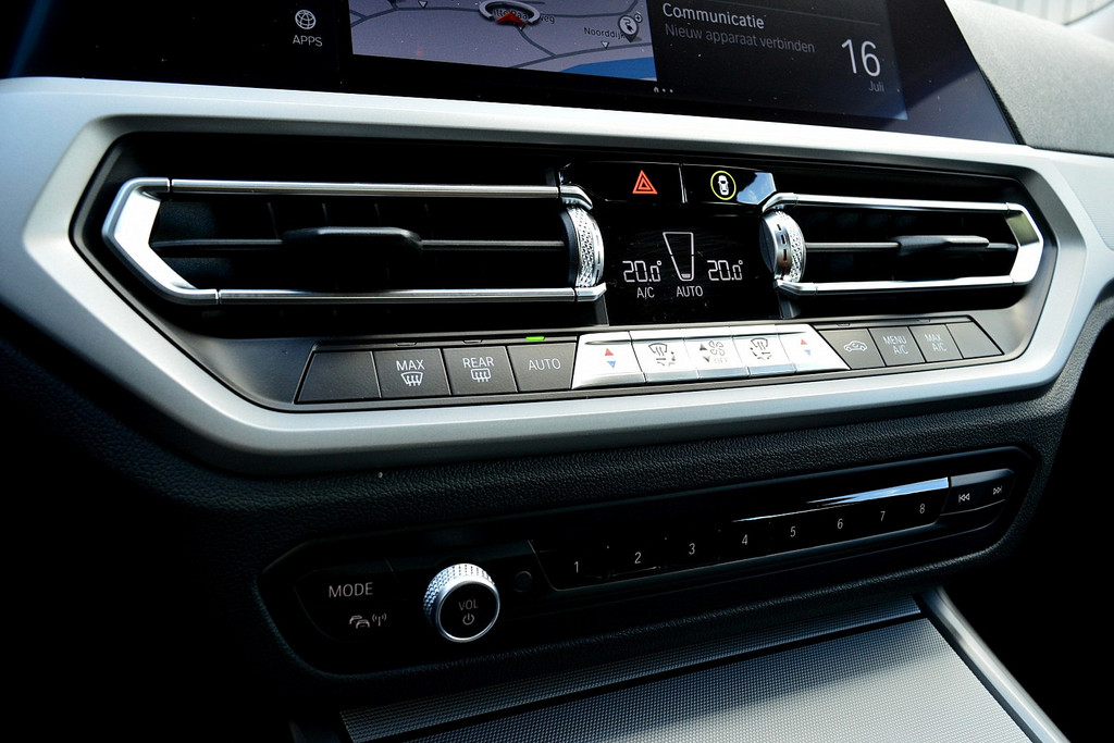 Het systeem controleert alle belangrijke functies en geeft die perfect weer via het digitale dashboard. Deze BMW 3-serie is 'connected'. Belangrijke functies worden permanent gemeten en zijn uit te lezen via een speciale app, ook op afstand. Gemakkelijk en veilig is de bediening het audiosysteem en het navigatiesysteem met harde schijf met knoppen op het stuur. De audio-kwaliteit is geweldig, dankzij de DAB-ontvangst. De sensoren van de achteropkomend verkeer waarschuwing registreren wat er gebeurt in de dode hoeken en achter u. U krijgt meteen een waarschuwing als u een achterligger over het hoofd ziet. De automatische airconditioning zorgt onder alle omstandigheden voor een prettige temperatuur. Wat u ook in deze auto kunt vinden zijn parkeersensoren voor en achter, regen- en lichtsensor, cruise control, sportstuurwiel, automatisch dimmende binnenspiegel en usb-aansluiting.
