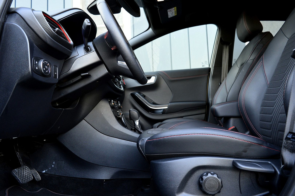 Bij het ontwerpen van de Ford Puma stonden uw comfort en uw veiligheid centraal. De krachtige benzinemotor staat garant voor uitstekende prestaties. Voorin is het 's winters genieten met de verwarmbare voorstoelen voor zowel bestuurder als bijrijder. De sportstoelen geven u veel zitsteun. Verder is de Ford uitgerust met: LED koplampen, sportonderstel, donker getint glas achter, in delen neerklapbare achterbank, LED-achterlichten en verstelbare lendensteunen.
