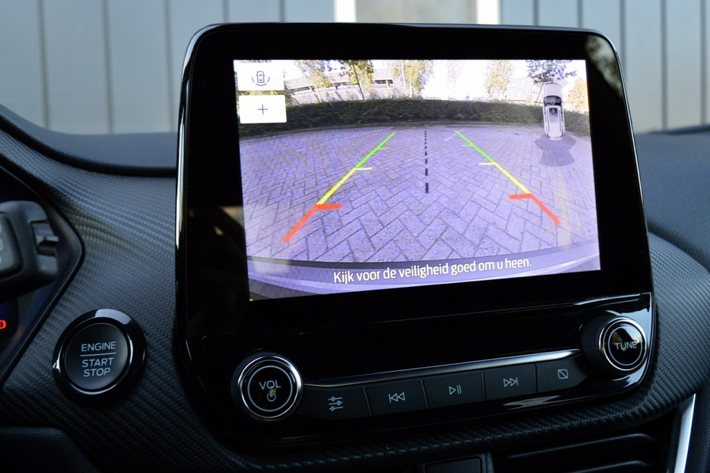 Een gevisualiseerd overzicht van alle belangrijke functies wordt geleverd door het digitale dashboard. Alles vrij achter? De achteruitrijcamera laat het meteen zien. In één oogopslag weet u de complete systeemstatus van deze auto. Dankzij Connected Services. Een belangrijke veiligheidsvoorziening is de bediening van het audiosysteem en het full map navigatiesysteem, via knoppen op het stuur en middels spraakbediening. DAB-ontvangst geeft daarbij een kraakheldere ontvangst. Kabelkluwens en stekkerslingers van smartphones zijn hier niet aan de orde. De draadloze oplaadmogelijkheid voor telefoons maakt opladen strak, simpel en snel. Deze Ford is voorzien van dual zone automatische airconditioning, schakelpaddles aan het stuur, regensensor, cruise control met snelheidsbegrenzer, keyless entry en automatisch dimmende binnenspiegel.