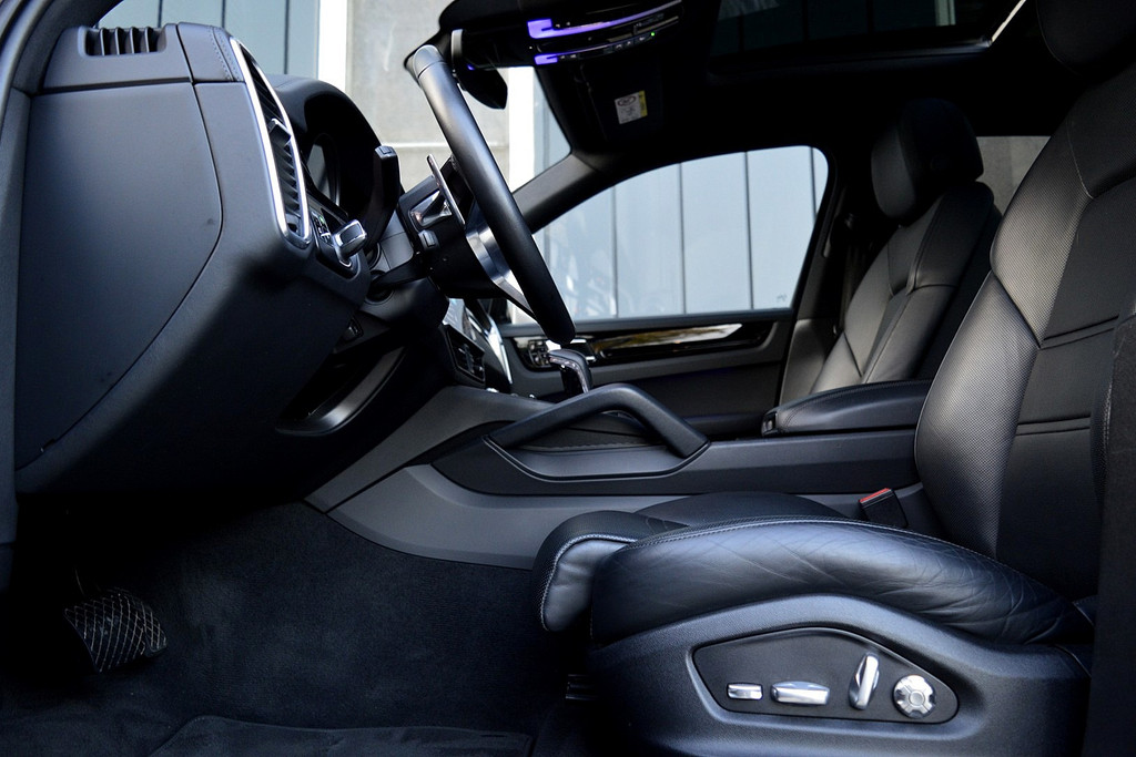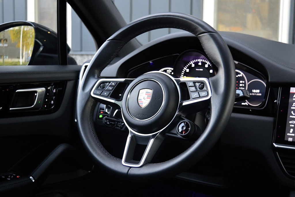 Deze auto nodigt u uit om plaats te nemen achter het sportstuur en onmiddellijk de weg op te gaan. De benzinemotor koppelt soepele prestaties aan een gunstig brandstofverbruik. Dit is een auto in het wat hogere segment; dat merkt u bijvoorbeeld aan de luchtvering. 's Winters op pad gaan kan een behoorlijke uitdaging zijn. Daarom is deze Porsche Cayenne voorzien van weldadige verwarmbare voorstoelen. Sportief rijden stelt eisen aan een stevige zitpositie voor rijder en bijrijder. Vandaar de strakke sportstoelen! Fijn zo'n elektrisch bediend glazen panoramadak. De bagageruimte is toegankelijk via een comfortverhogende elektrische achterklep. De koplampen met matrix LED-verlichting geven daglichtkwaliteit zonder tegenliggers te hinderen. U wordt in deze auto ook getrakteerd op 21 inch lichtmetalen velgen, adaptief dempingsysteem, warmtewerend glas, adaptief onderstel, trailer assistent en dakspoiler.