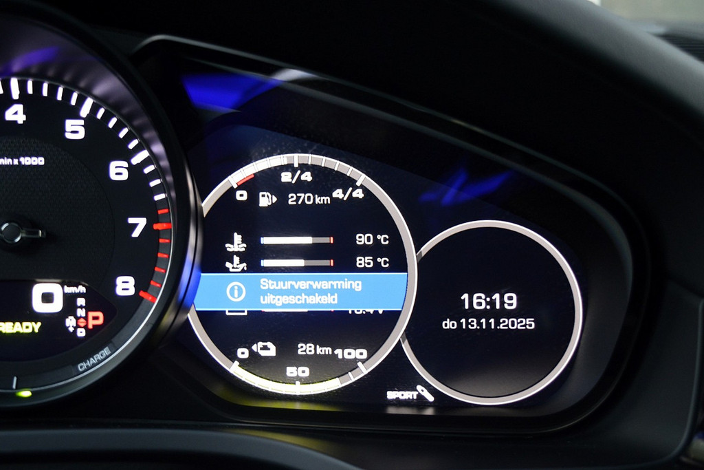 Pragmatisch en veilig als deze auto is, beschikt hij over diverse veiligheidssystemen. Met het Lane-keeping systeem gaat u nooit onbedoeld over de streep. In een noodsituatie waarschuwt forward collision warning bij een dreigende aanrijding met een voorligger. In deze Porsche vinden we verder een head-up display, dodehoekdetectie, hill hold functie, brake assist en bandenspanningcontrolesysteem.