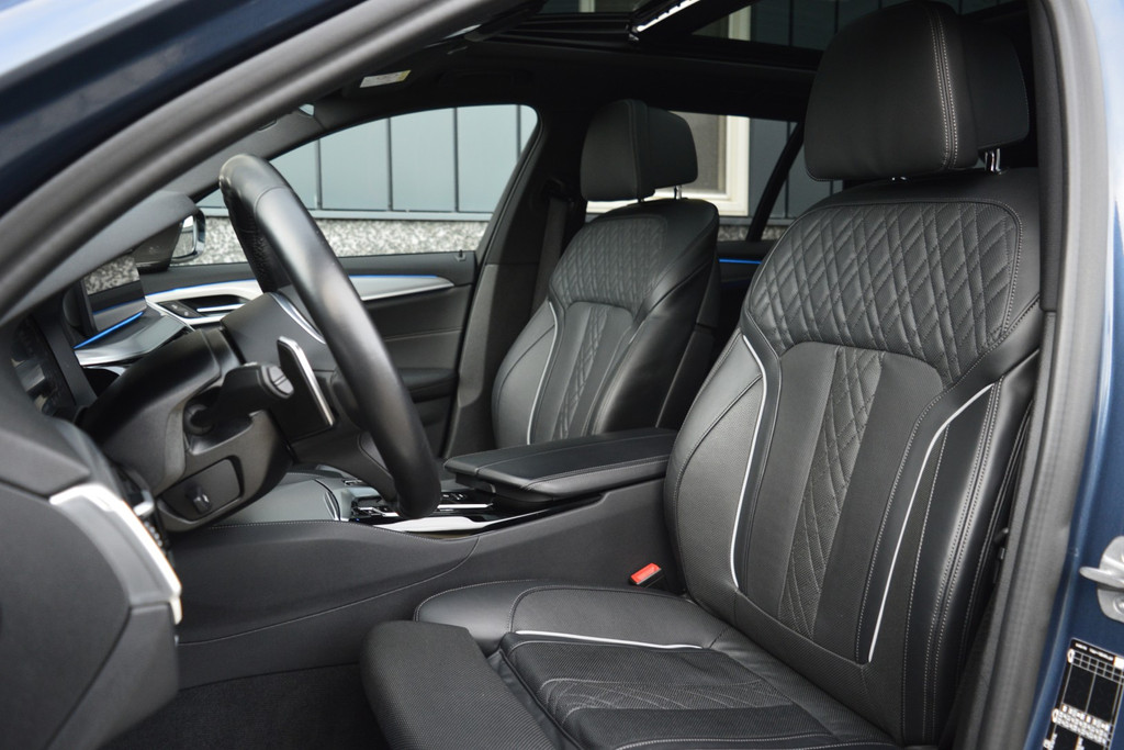 Het digitale dashboard vertelt u onderweg alles dat bijdraagt aan een veilige, efficiënte rit. Communiceren met uw auto? Dat gaat via remote services. Met uw smartphone maakt u waar dan ook contact om allerlei functies te checken of te activeren. Deze BMW is voorzien van knoppen op het stuur om het navigatiesysteem met harde schijf en het audiosysteem met DAB-ontvangst te bedienen. Omdat u nu eenmaal niet overal ogen heeft, is deze BMW 5-serie Touring voorzien van een achteropkomend verkeer waarschuwing die registreert wanneer de afstand tot uw achterligger te krap is. Ook is de auto voorzien van automatische airconditioning. Met WIFI-hotspot, parkeersensoren achter, regen- en lichtsensor, cruise control, sportstuurwiel en automatisch dimmende buitenspiegels is deze BMW helemaal compleet.